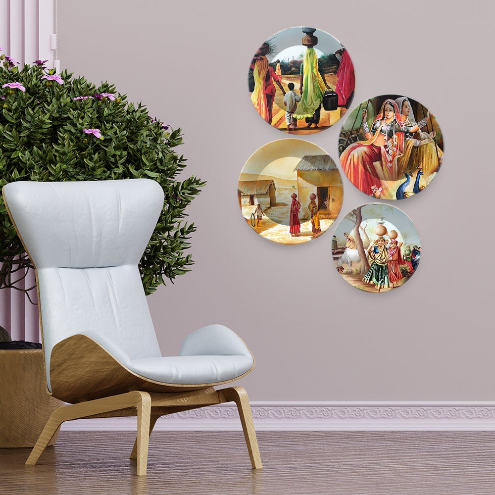 Traditional Rajasthani Village Culture Art Wall Plates Set of 4