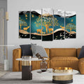 Trees and Deer Canvas Wall Painting Set of Five Pieces