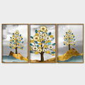 Unique Golden Trees Floating Canvas Wall Painting Set of Three
