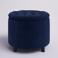 Velvet Tufted Royal Blue Rounded Shaped Storage Ottoman