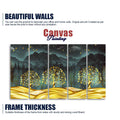 Wall Painting of Golden Trees in Dark Forest of Five Pieces