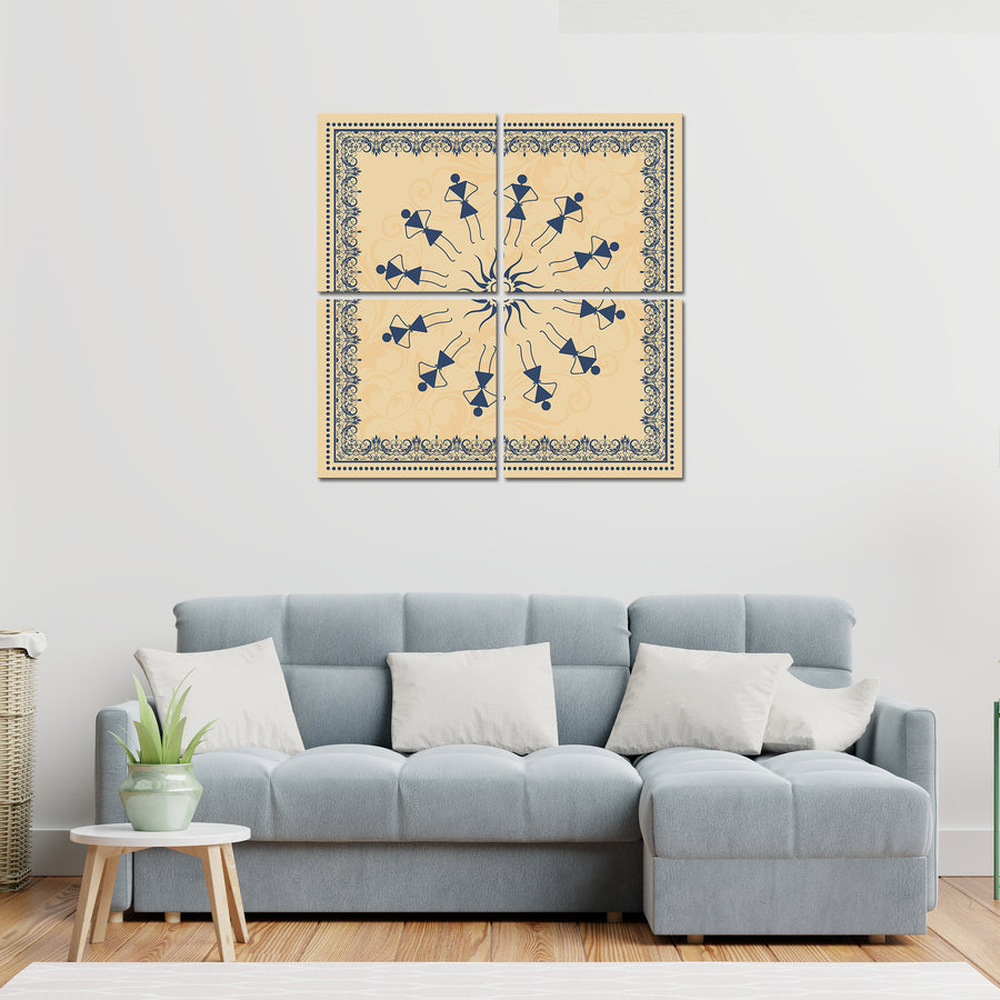 Warli Art Wall Hanging Painting, Set of 4 Pieces