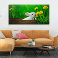 White Bunny in Yellow Flowers Garden Canvas Wall Painting